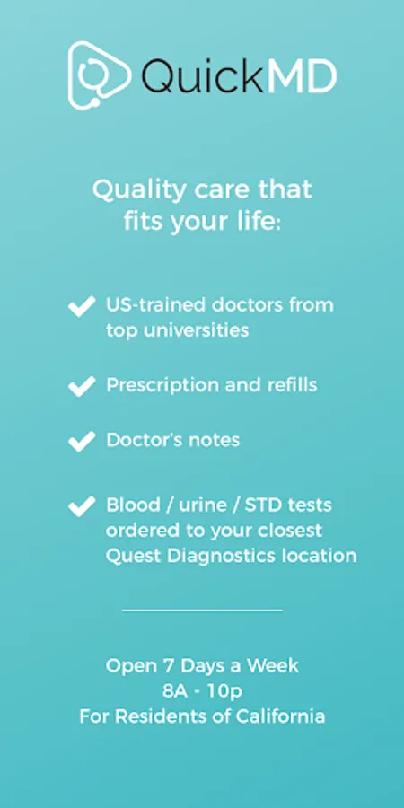 *Please note that we cannot prescribe high-risk medications including controlled substances except as part of 'Medication-Assisted Treatment'. Our doctors only prescribe when it is safe to do so (e.g. no antibiotics for viral illnesses etc). If we cannot help you, your visit is free. If you are unsure if we can take care of your problem, send us an email, go to our quick.md website or call 1-888-8-QUICKMD.