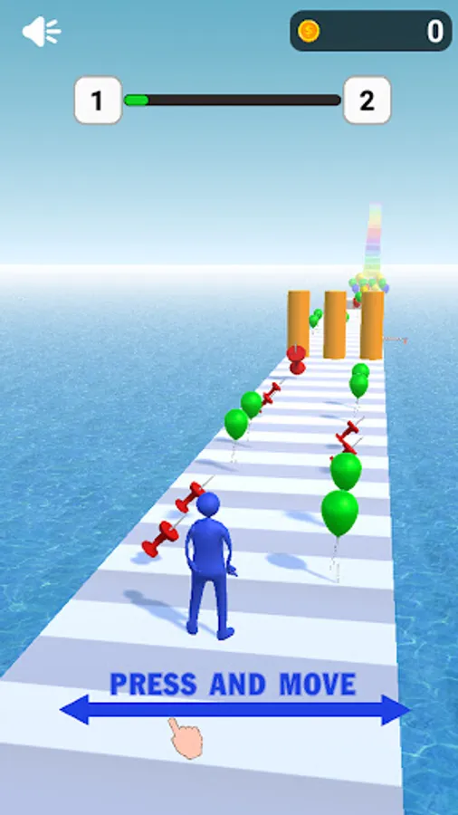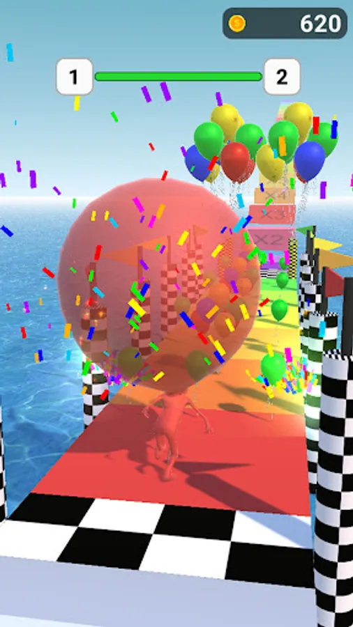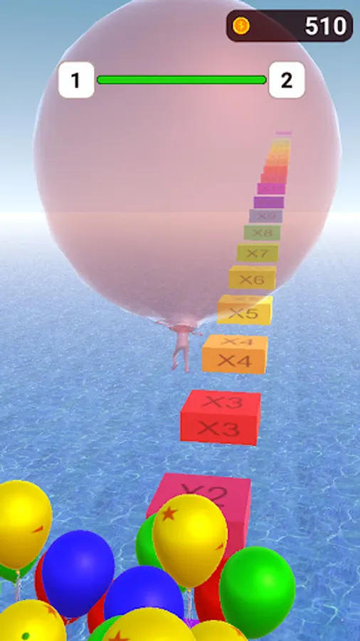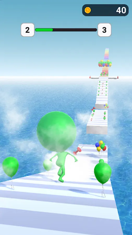 Pick up balloons, inflate and fly! Get pricked by pins, release some air and run!
