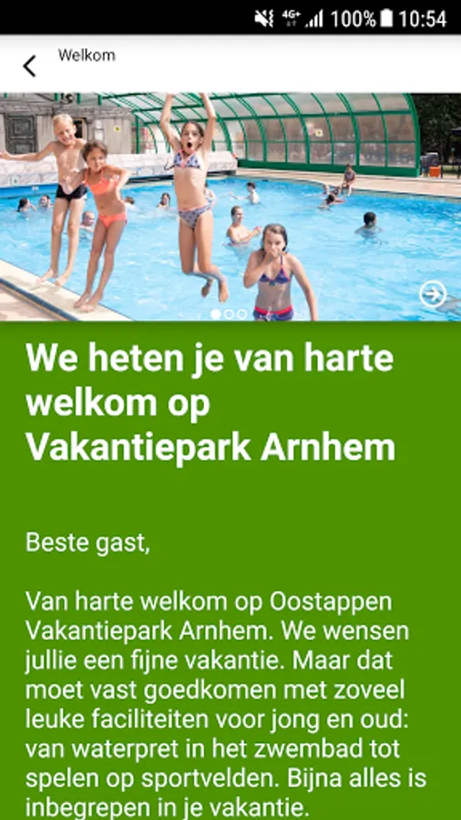 Welcome to Oostappen Vakantiepark Arnhem. The motto "vacation for everyone" is central to us. We have developed this Arnhem app to be able to provide you with the best possible information, always and everywhere. Here you will find all the information you need before and during your holiday and we would like to bring you completely into the holiday atmosphere.