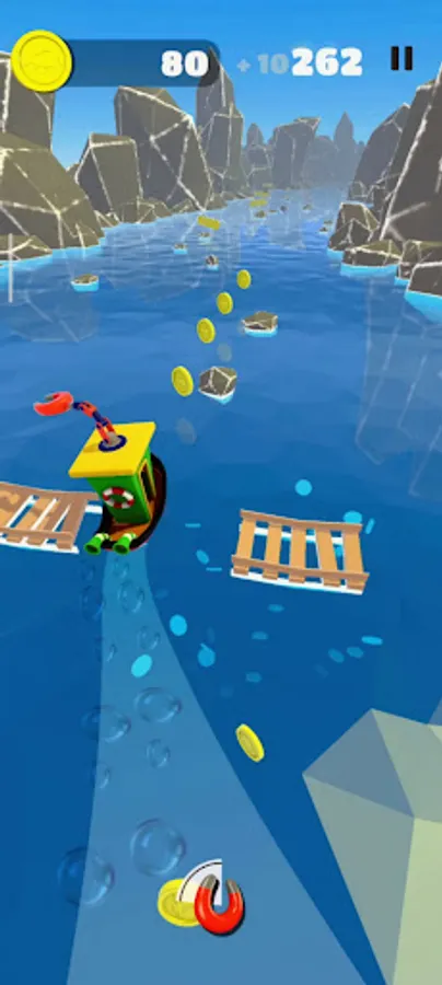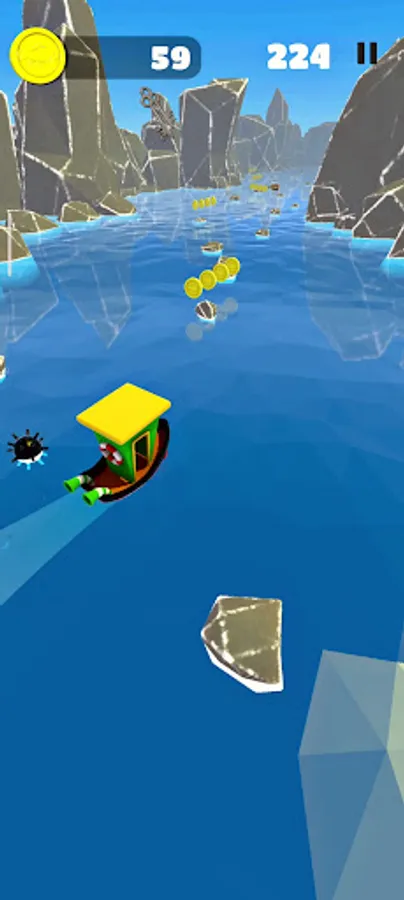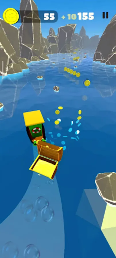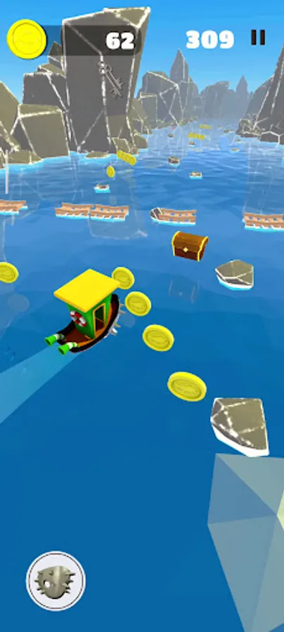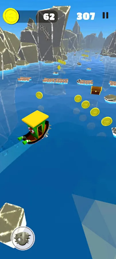 В главных ролях ты, управляющий лодкой. Собирай монеты и не забывай уворачиваться от препятствий, которые будут увеличиваться со временем. Также приятный бонус в виде ключика со шкатулкой, который увеличивает количество твоих монет.