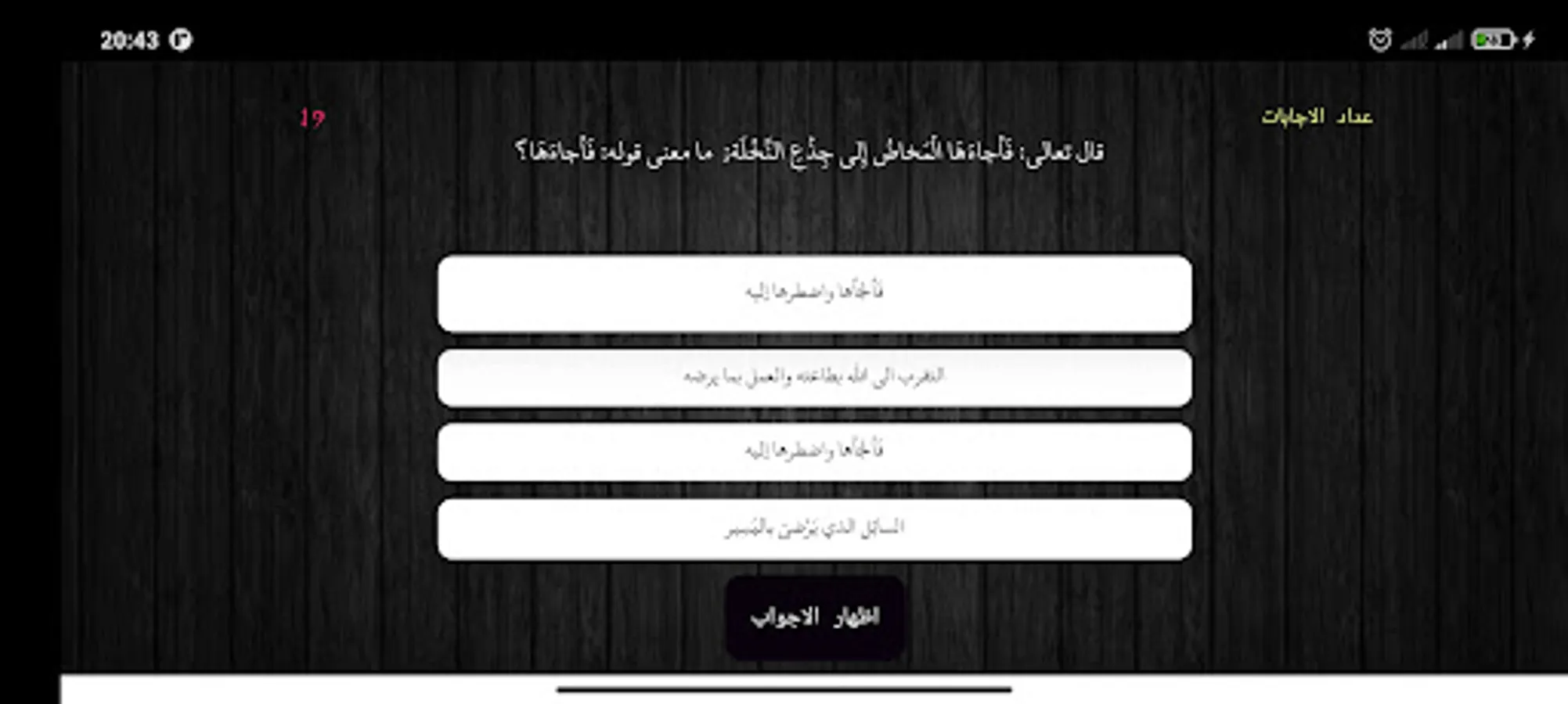 Just develop your mental skill and test your mental abilities, your culture and your religious and historical background by answering the questions available to you in the application. This application is beautiful, wonderful and easy to use as you can learn a lot of new vocabulary that many of the memorizers of the Holy Qur’an do not know and contains a place to answer the questions It also contains the place of the noble hadiths, and the third box contains the number of answers that you answered and also gives you the statistics in a percentage. This is only in one application, and all of this will enable you