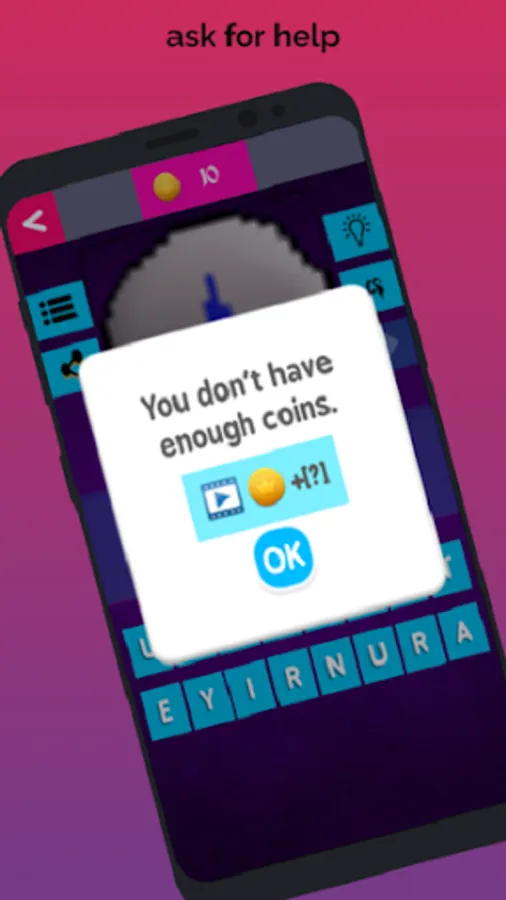 As we advance in levels and guess the names of the resources we get coins that can be used to ask for help.