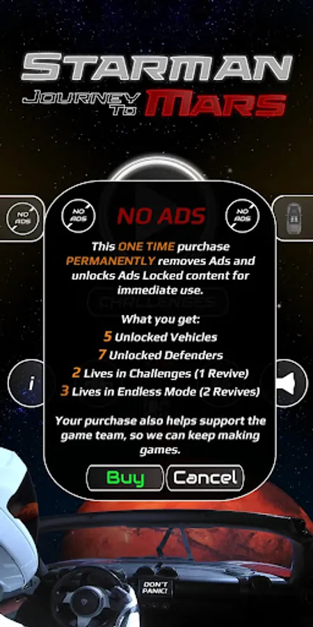 **Ads can be disabled by one time purchase of the no ads option in main menu. All ads-locked content will be automatically made available after this purchase. This will give you a considerable advantage on your quest for mars.