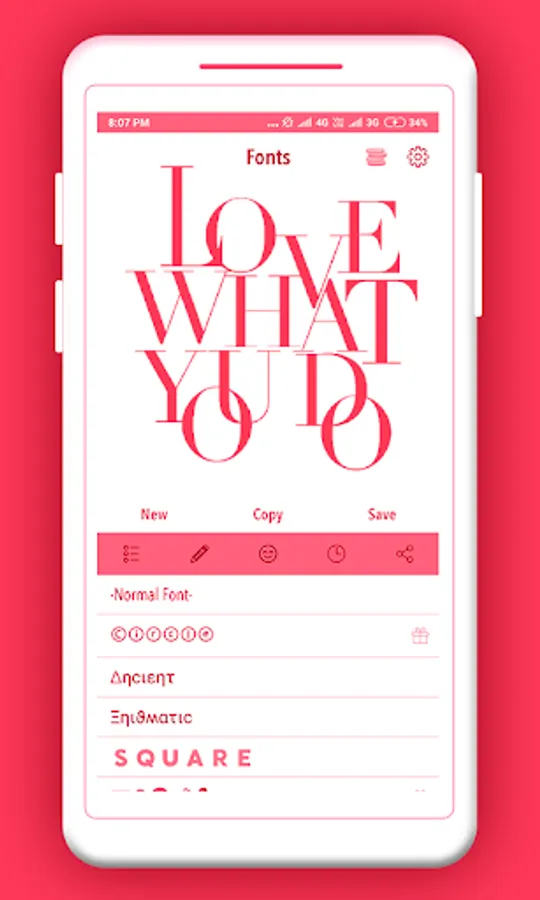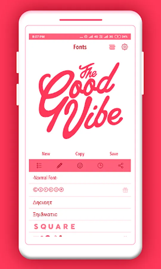 Font Changer app does not install fonts in your Android Phone. You can type message in Cool fonts with the selected font and Copy. You can paste copied text in any other apps.