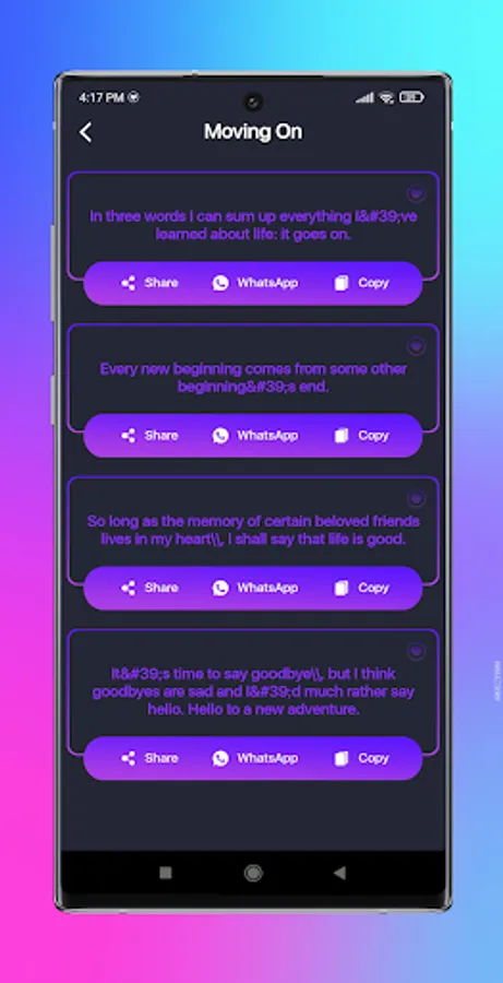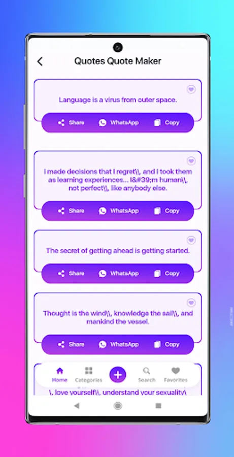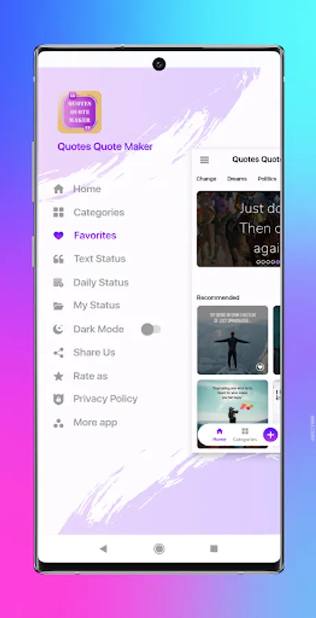 Quotes Creator is a perfectly built with good design (UI) and user experience. It's a easy, best and user friendly quote generator and quote maker app ever.