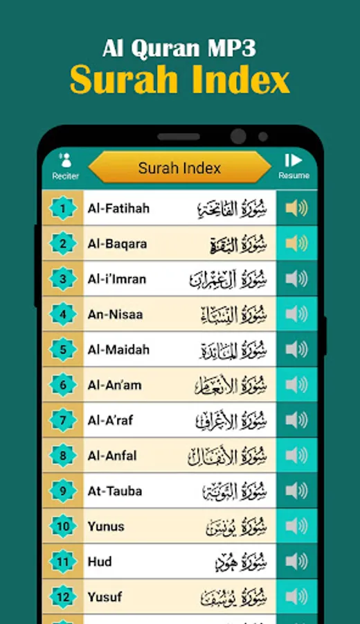 • Resume Listening Feature (Continue Listening Quran where you left last time)