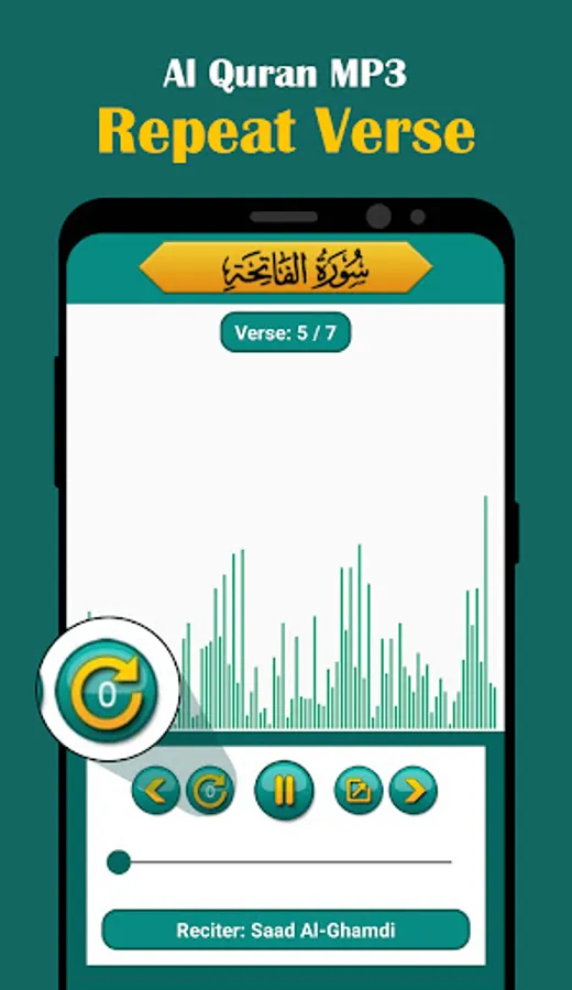 • Repeat Every Verse Audio Upto 5 Times (Select Repeat Feature from 0 to 5)
