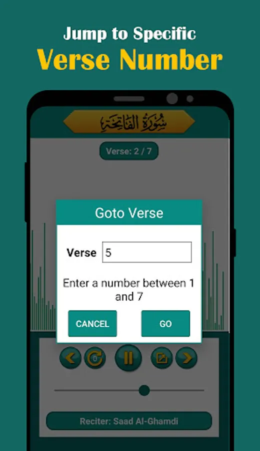 • Goto Verse Feature (Jump to specific Verse (Ayah) of selected surah)