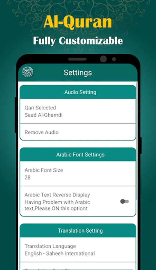 • Clear Audio Data of Specific Reciter from storage [Open Setting, Choose “Remove Audio” Option and then Remove any Specific Reciter Audio]