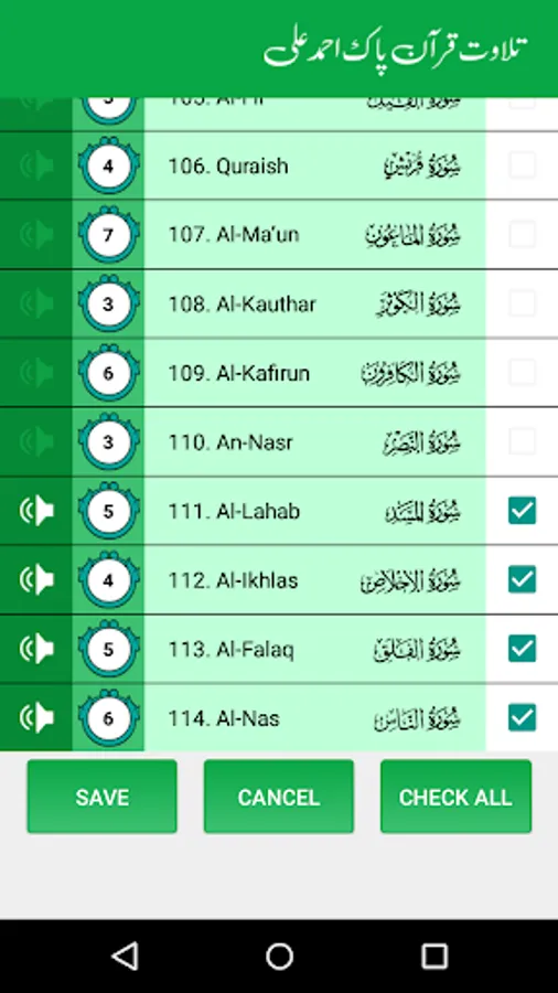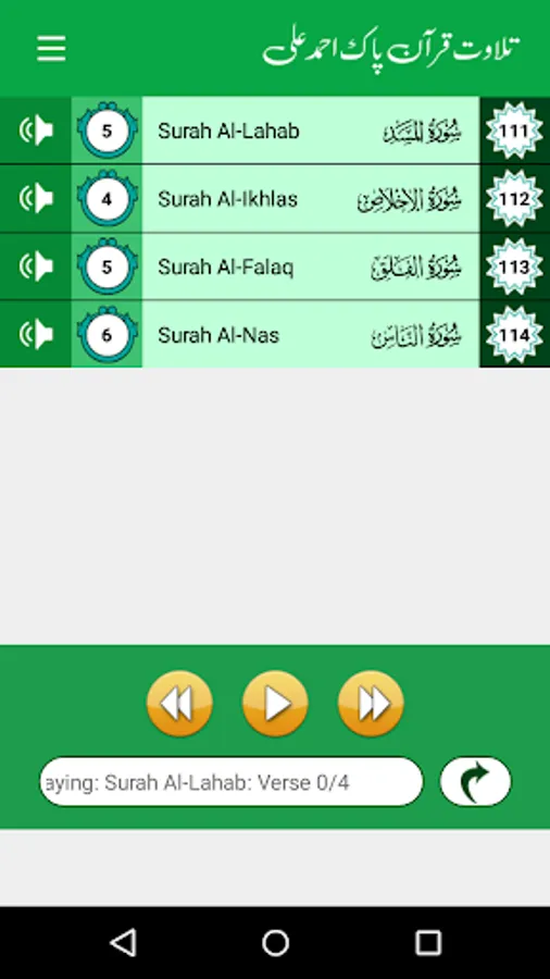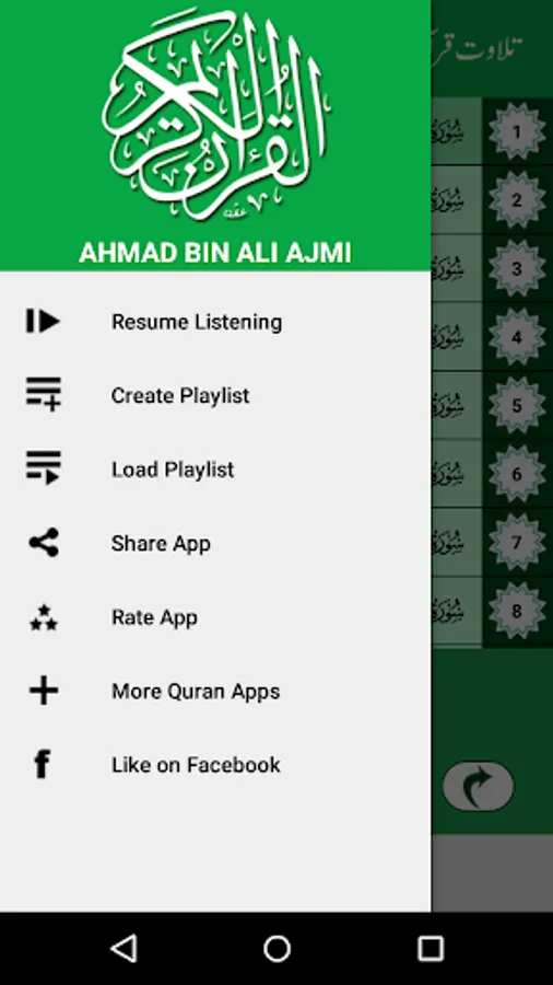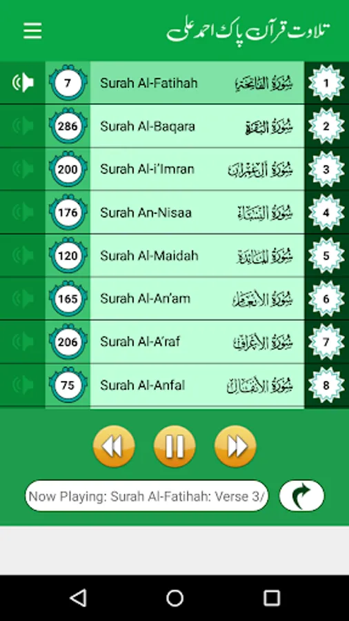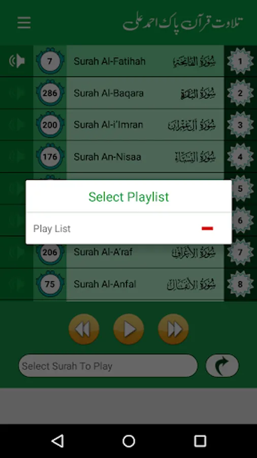 This App allows creating Multiple Play Lists of Surah, after creation load your specific playlist and listen all play list surahs continuously. Goto Ayah Allow you to Jump on specific Ayah of Selected Surah. This App work smartly to save your battery consumption, even you can listen Quran while mobile on the standby mode.
