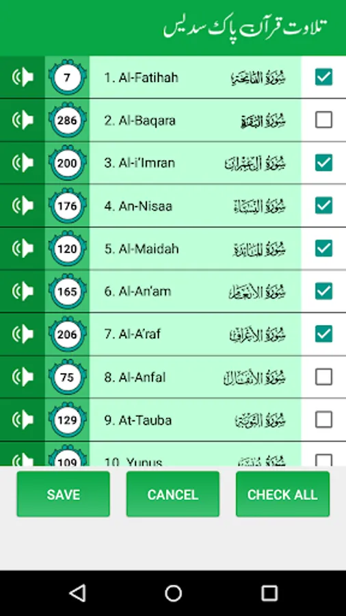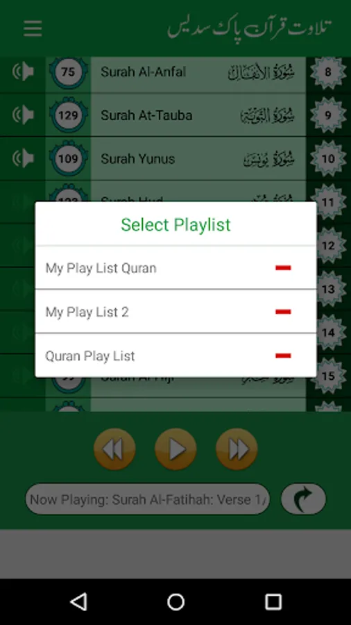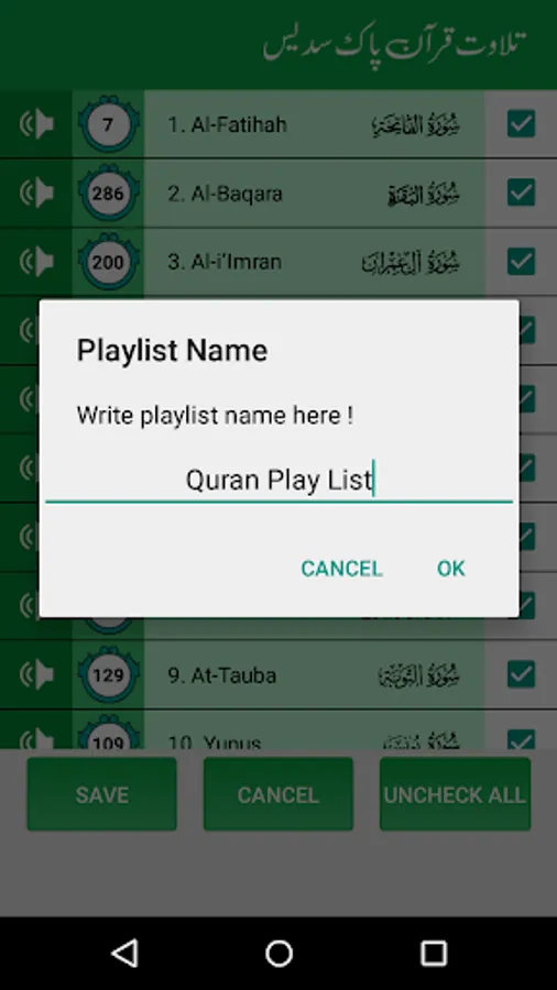 • Create Playlist (to listen the combination of Surahs)