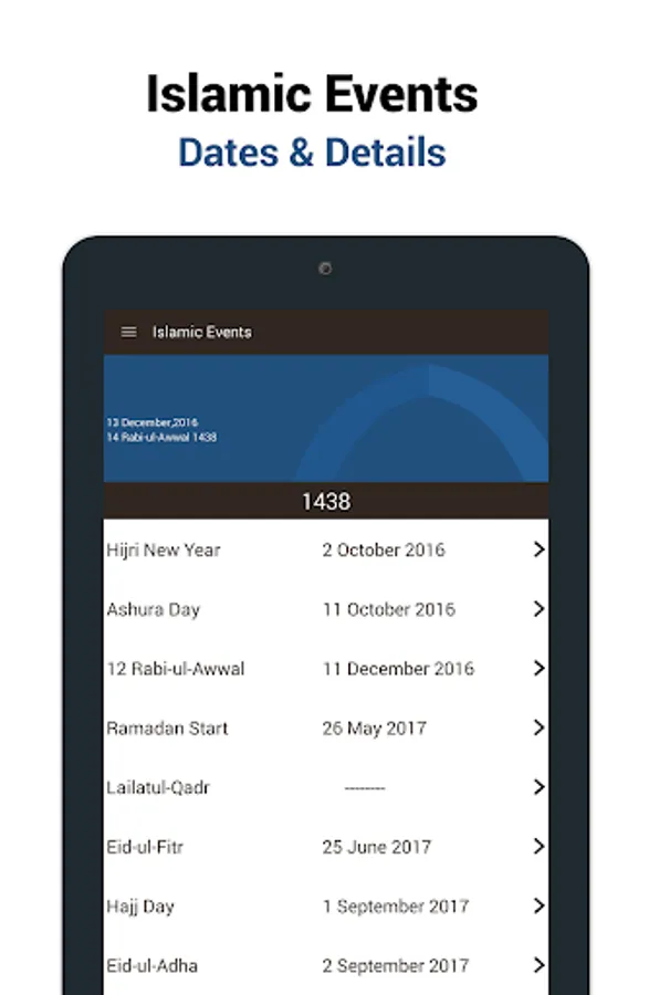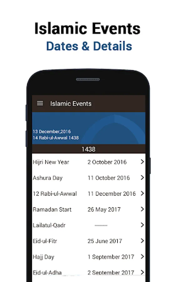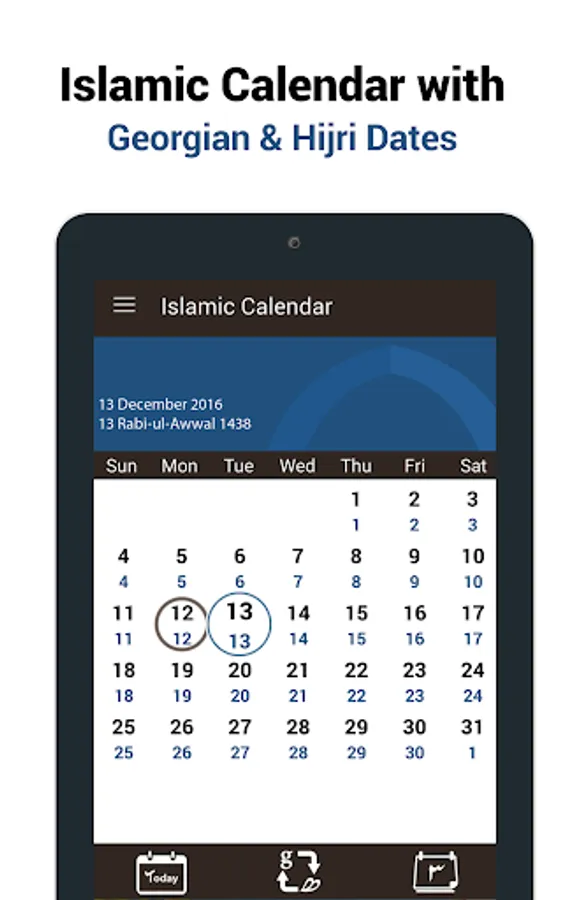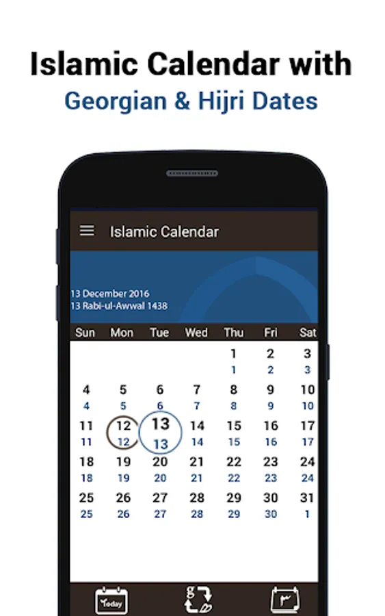 Islamic Hijri Calendar is a Smartphone Application which provides Muslims all over the world with accurate Hijri Calendar besides the Gregorian. It also comes up with greatly useful information regarding important Events happening throughout the Islamic Year such as Ramadan, Hajj and Eid Festivals etc.