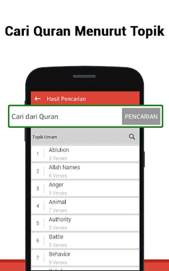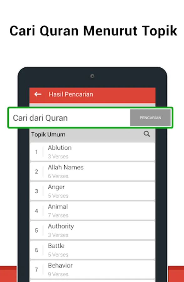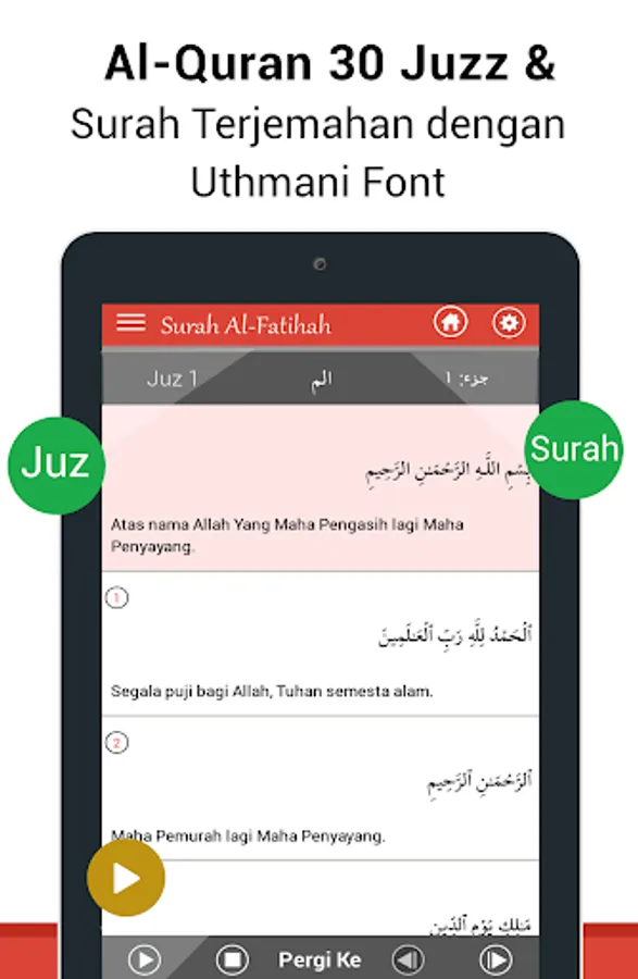 Quran Indonesia aplikasi memiliki fitur berikut :