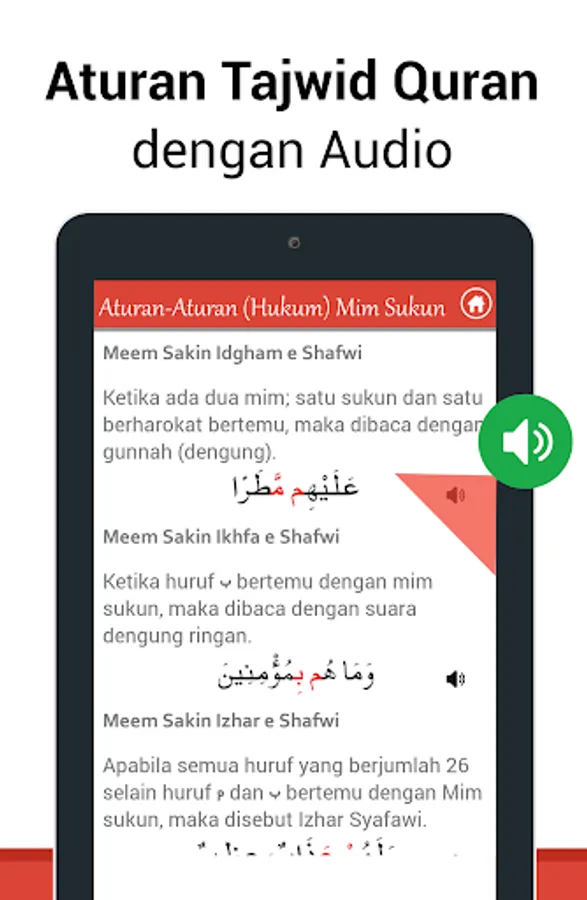 Baca lengkap Quran pada smartphone Anda kapan saja di mana saja Anda inginkan. Aplikasi ini mengajarkan Anda bagaimana untuk membaca Quran dengan Tajwid bacaan dengan Memanfaatkan fitur audio dan transliterasi.