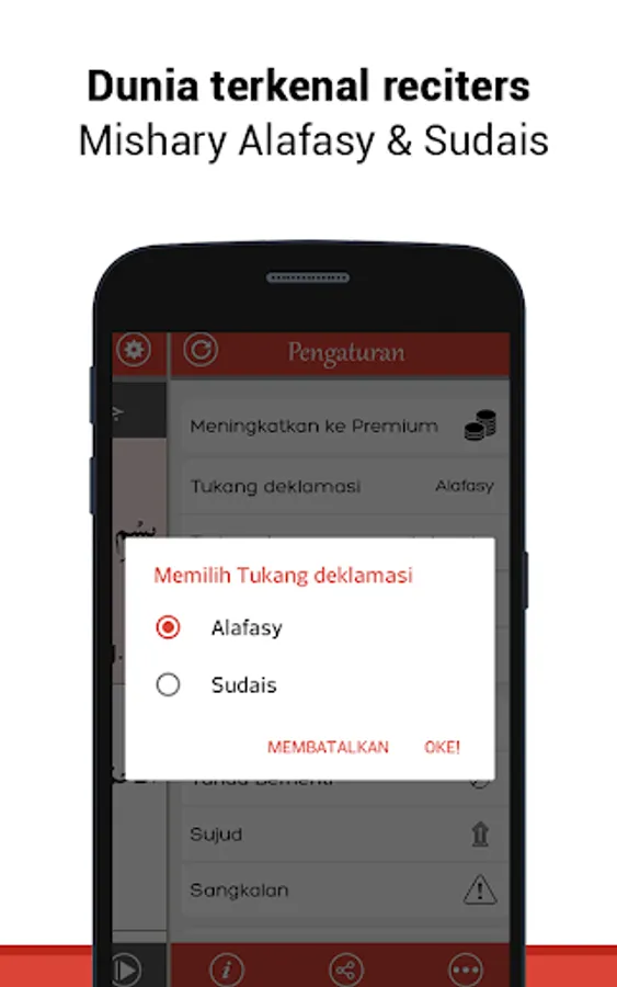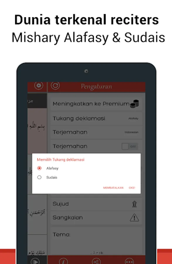 • Bookmark ayat untuk dapat memulai bacaan dari mana Anda tinggalkan.