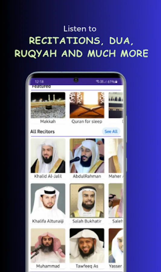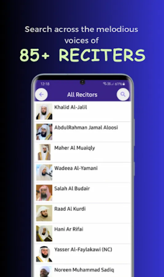 ★ Browse through the world class famous Quran Recitors.