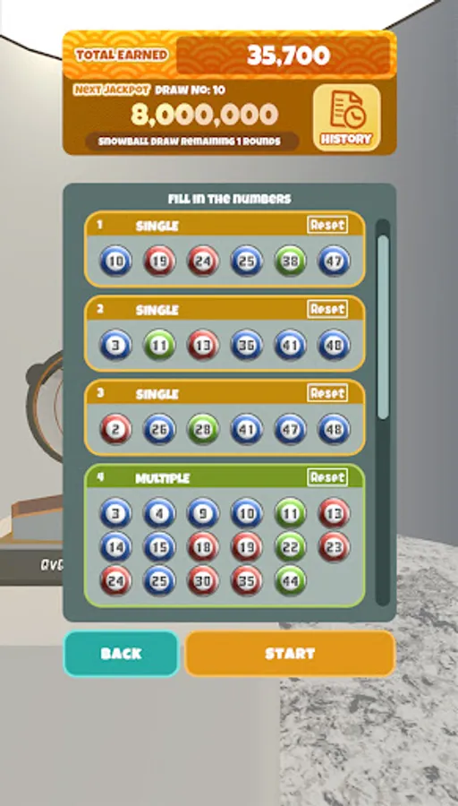 With the automatic number selection function and various easy-to-achieve unlocking gameplay, you can unlock all the gameplay content without additional payment. You can adjust the speed of the mixing process from 1 to 3 times at any time and enjoy the process of checking the winning numbers anytime and anywhere.