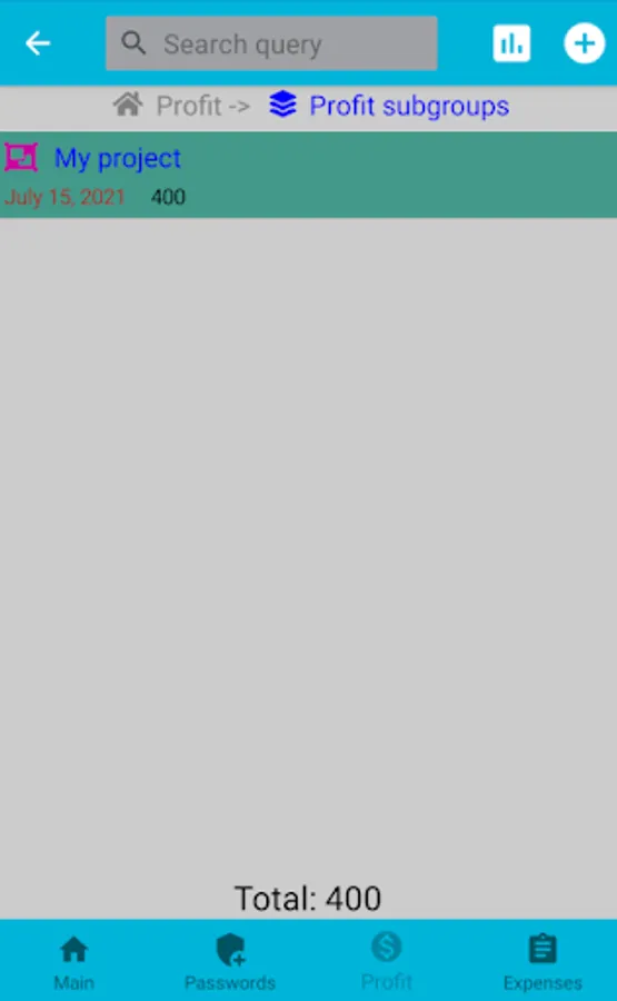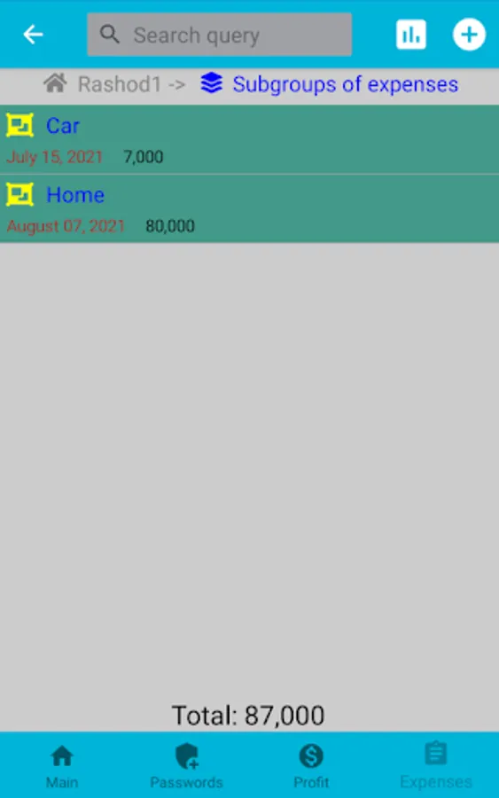 This program is designed to provide accounting of income and expenses. You can create your own expense groups, subgroups, and already keep expenses or income in them. Car expenses, apartment repairs, and any other expenses.