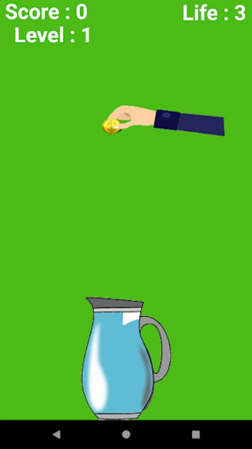 Welcome to dropping coins game, which people in Haiti called “RAF”. This game is a local and seasonal game. This game is monthly play by the kids in December.This game includes a hand that is holding a coin and a jar filled with water. For this program the hand is to drop the coin inside of the jar and have the coin successfully land inside.