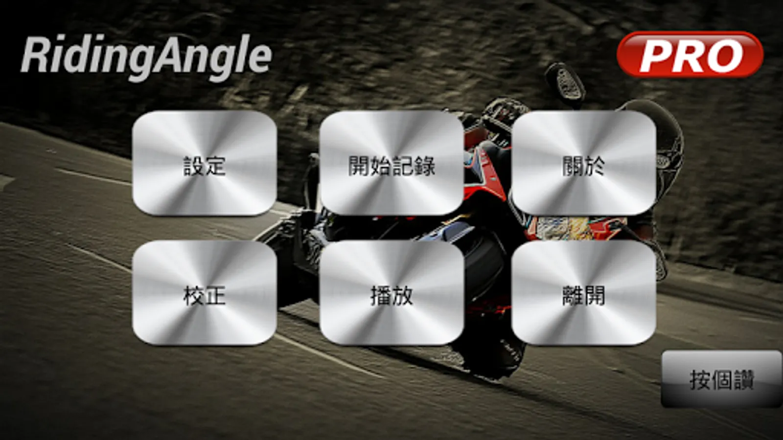 RidingAngle is an excellent APP for all motorcycle riders.It records video file, GPS position and lean angle simultaneously.While recording, it also provides record duration, real time lean angle, and maximum left & right