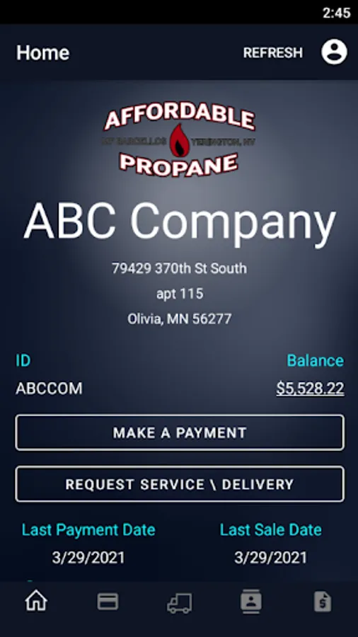 Information at your fingertips! This app gives you direct access to your account balance, location and contract information. It also gives you the ability to store and process payment and request service work and deliveries directly through the app.