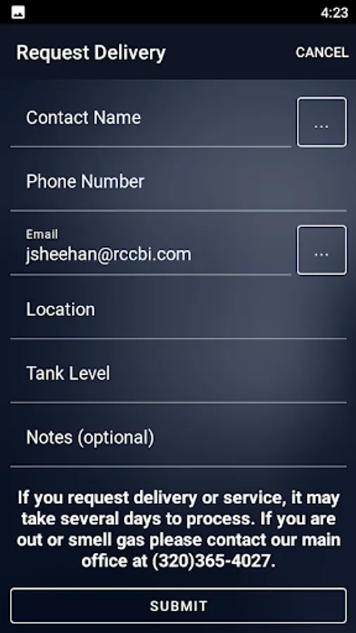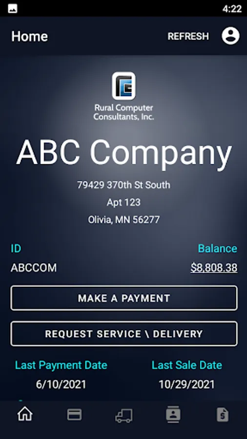 Information at your fingertips! This app gives you direct access to your account balance, location and contract information. It also gives you the ability to store and process payment and request service work and deliveries directly through the app.