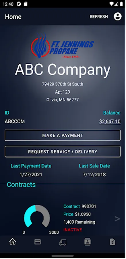 Information at your fingertips! This app gives you direct access to your account balance, location and contract information. It also gives you the ability to store and process payment and request service work and deliveries directly through the app.