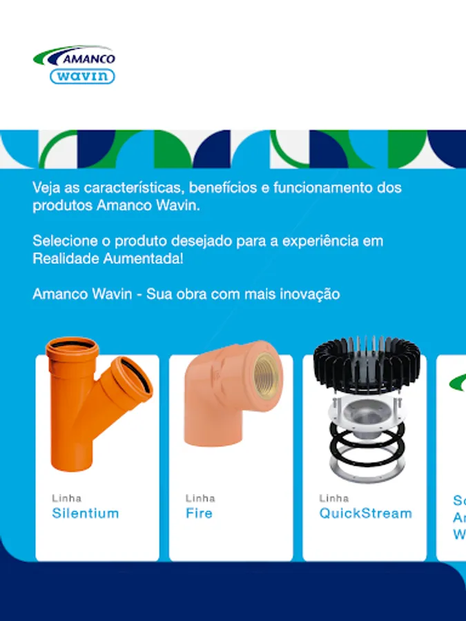 Through this app, you will have access to a list of products from the Amanco Wavin line for an Augmented Reality experience.
