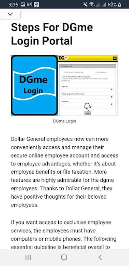 There is a hub of information for the employees associated with the Dollar General Corporation. An Individual employee can access their account through the employee Portal and will be able to evaluate their benefits about DGme Paystub, Retrieve Employee ID, Career Opportunity, Wages Paystubs, Health & Well-Being Benefits, and many more.