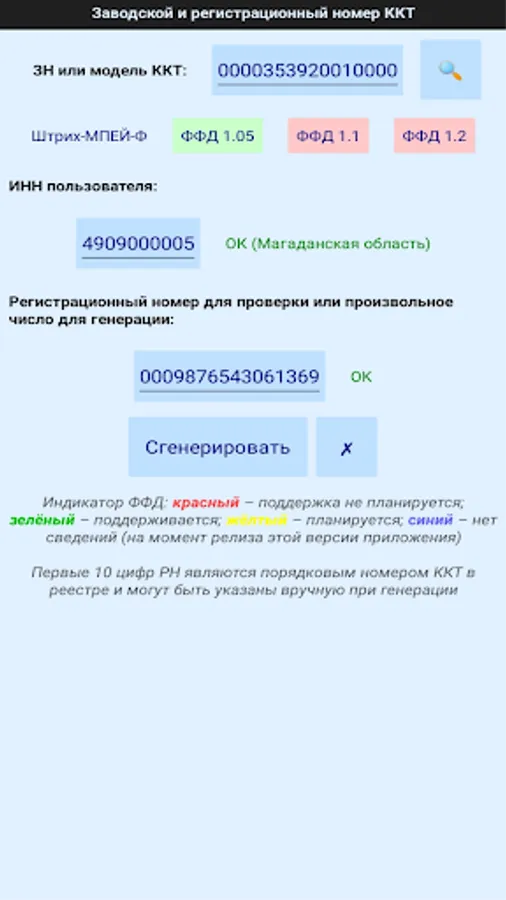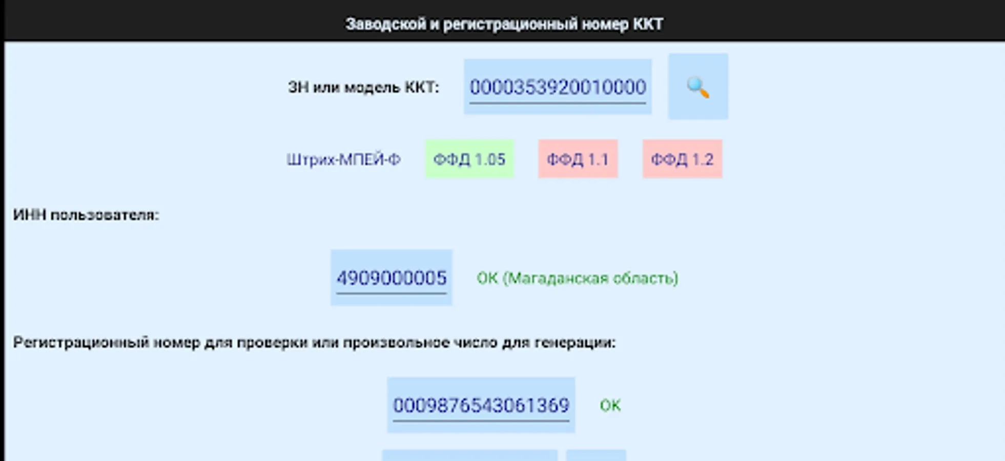 - automatically determine models of cash registers and fiscal drives (FN) by their serial numbers, as well as regions of the Russian Federation by TIN codes;