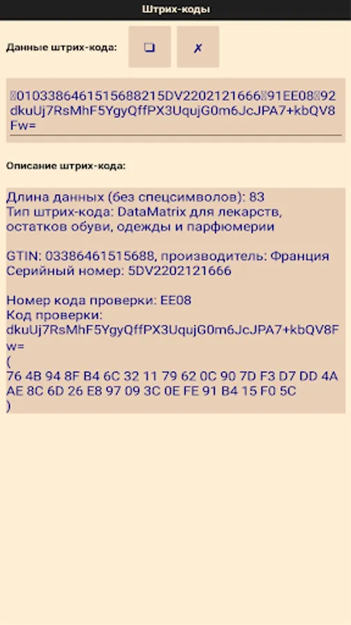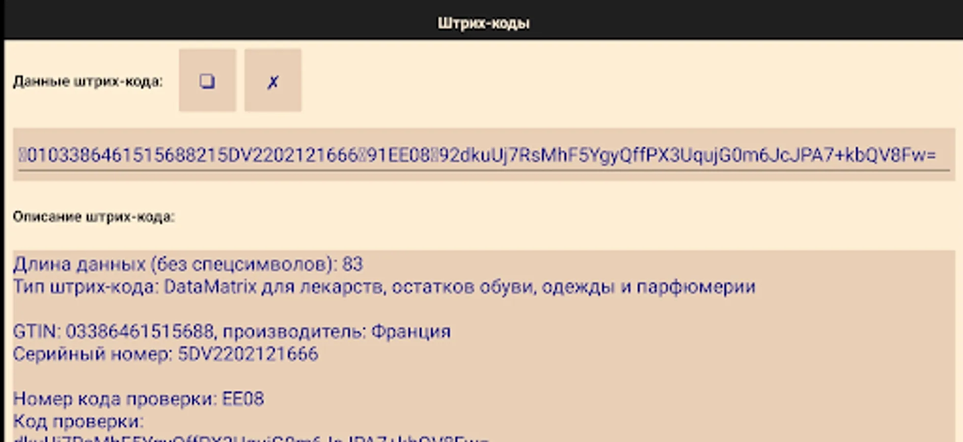 - determine the types of barcodes and parse their contents (including the DataMatrix of marked goods);