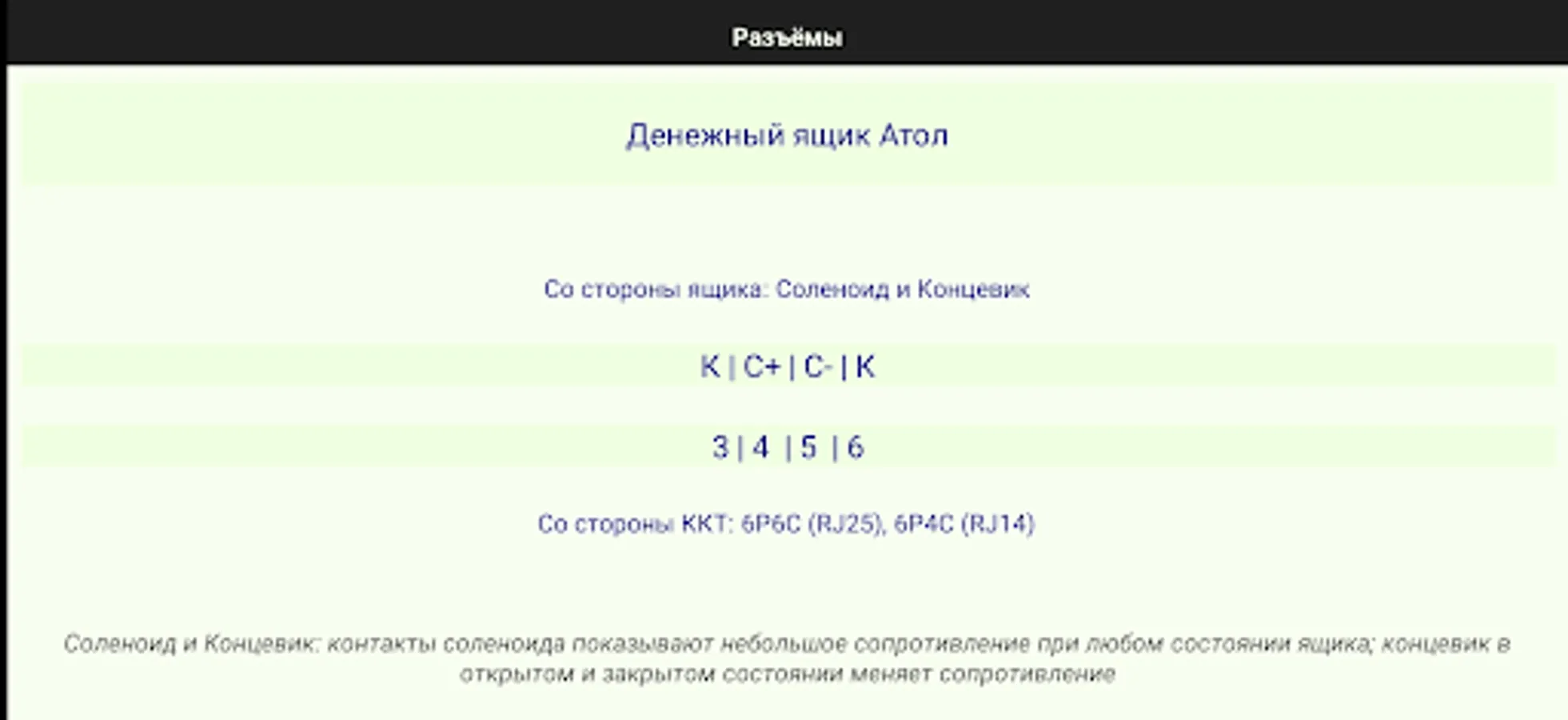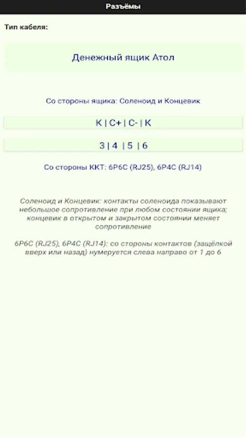- view the pinouts of cables KKT - PC, KKT - DYa and KKT - Printer;