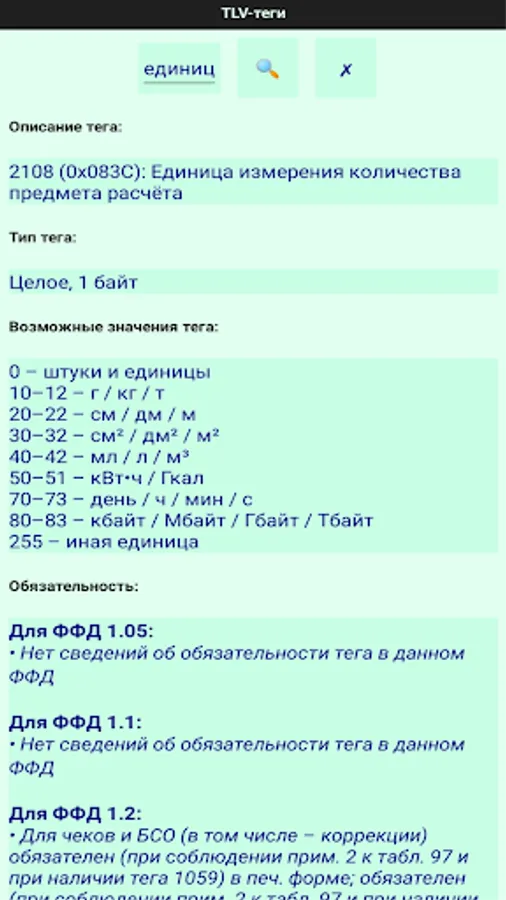 - receive descriptions and indications of mandatory TLV tags for various FFDs;