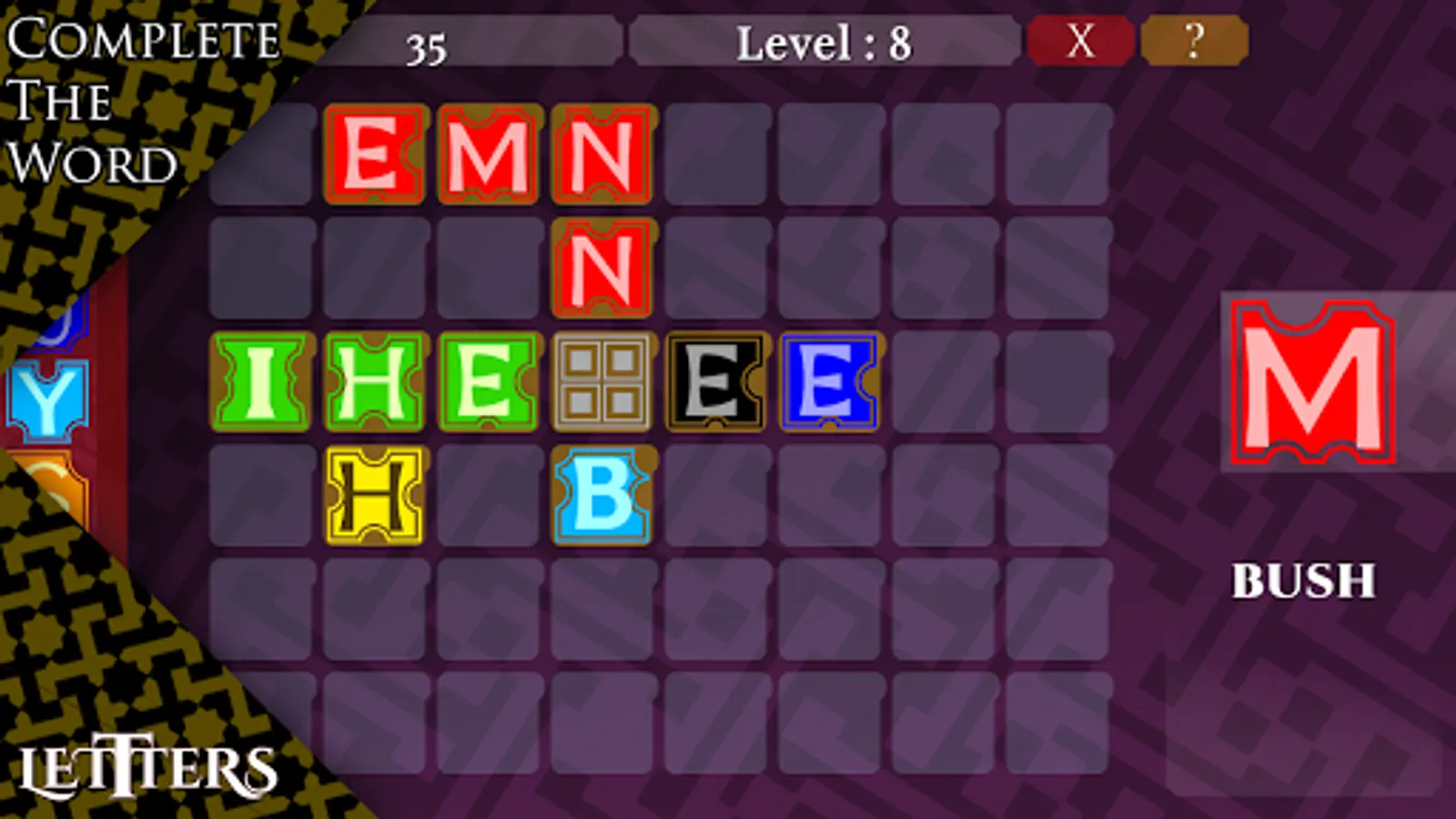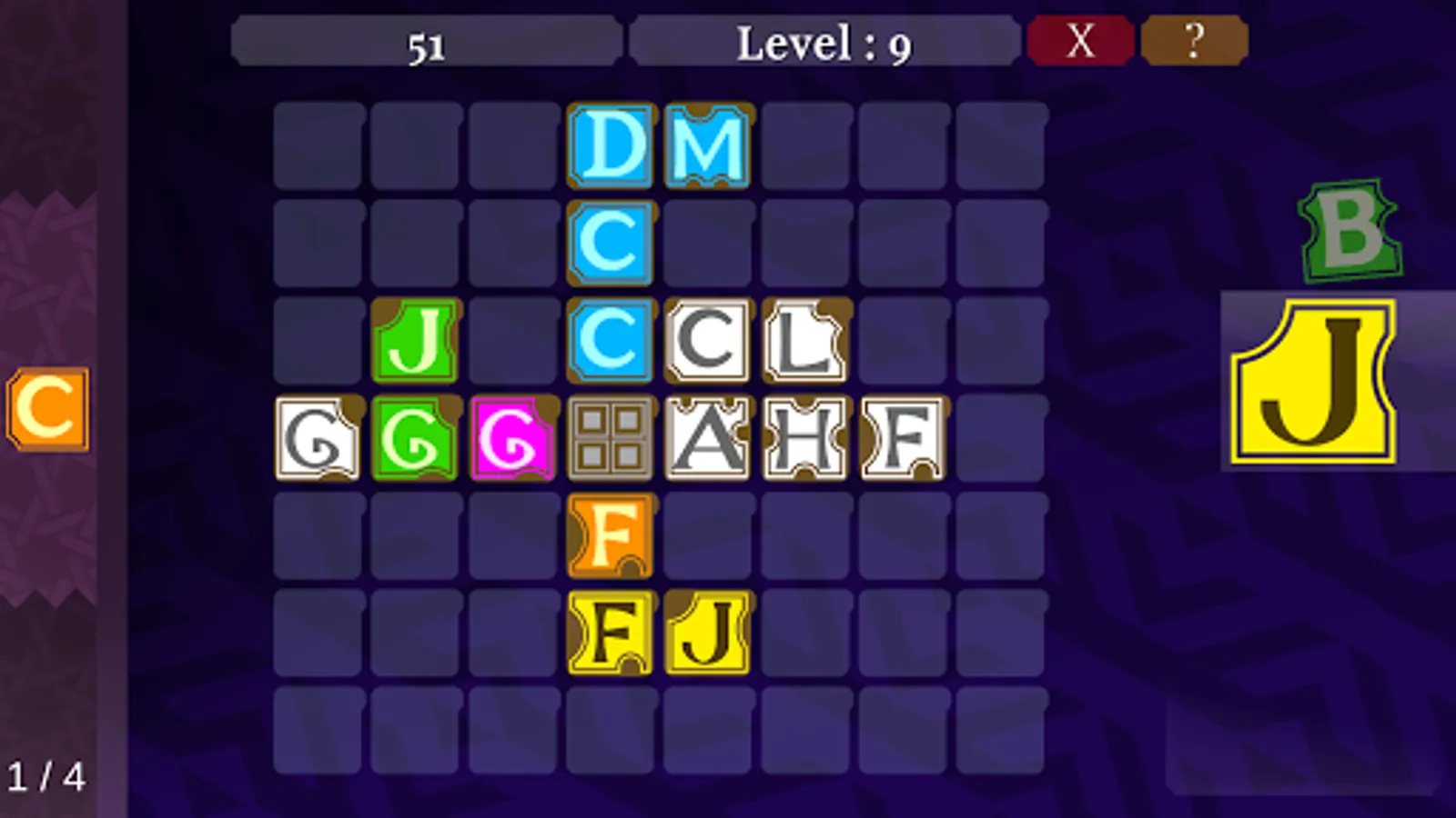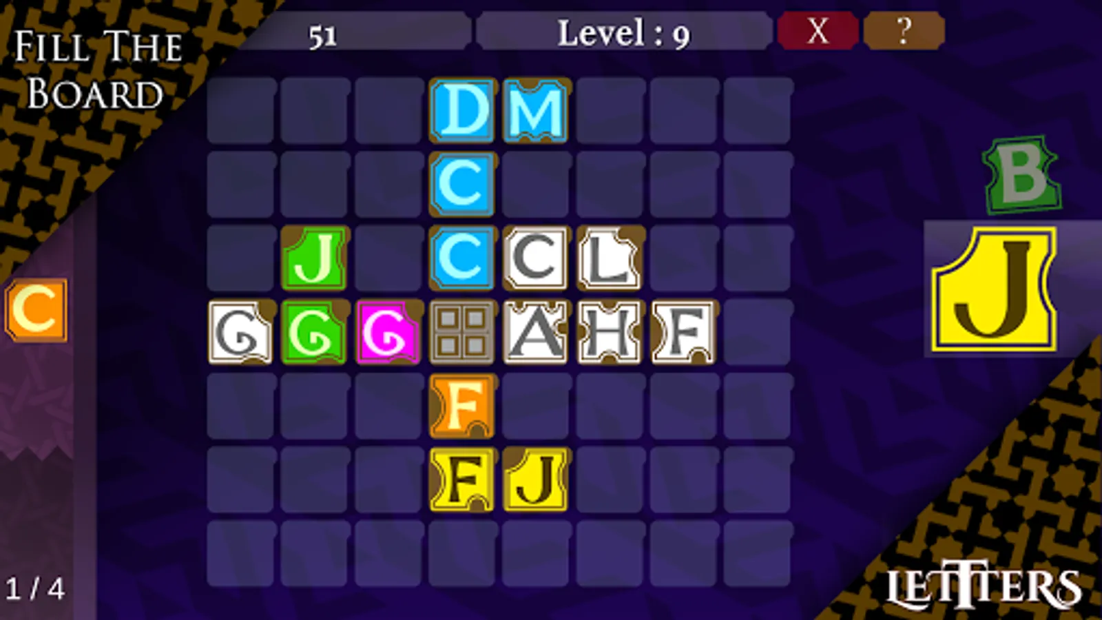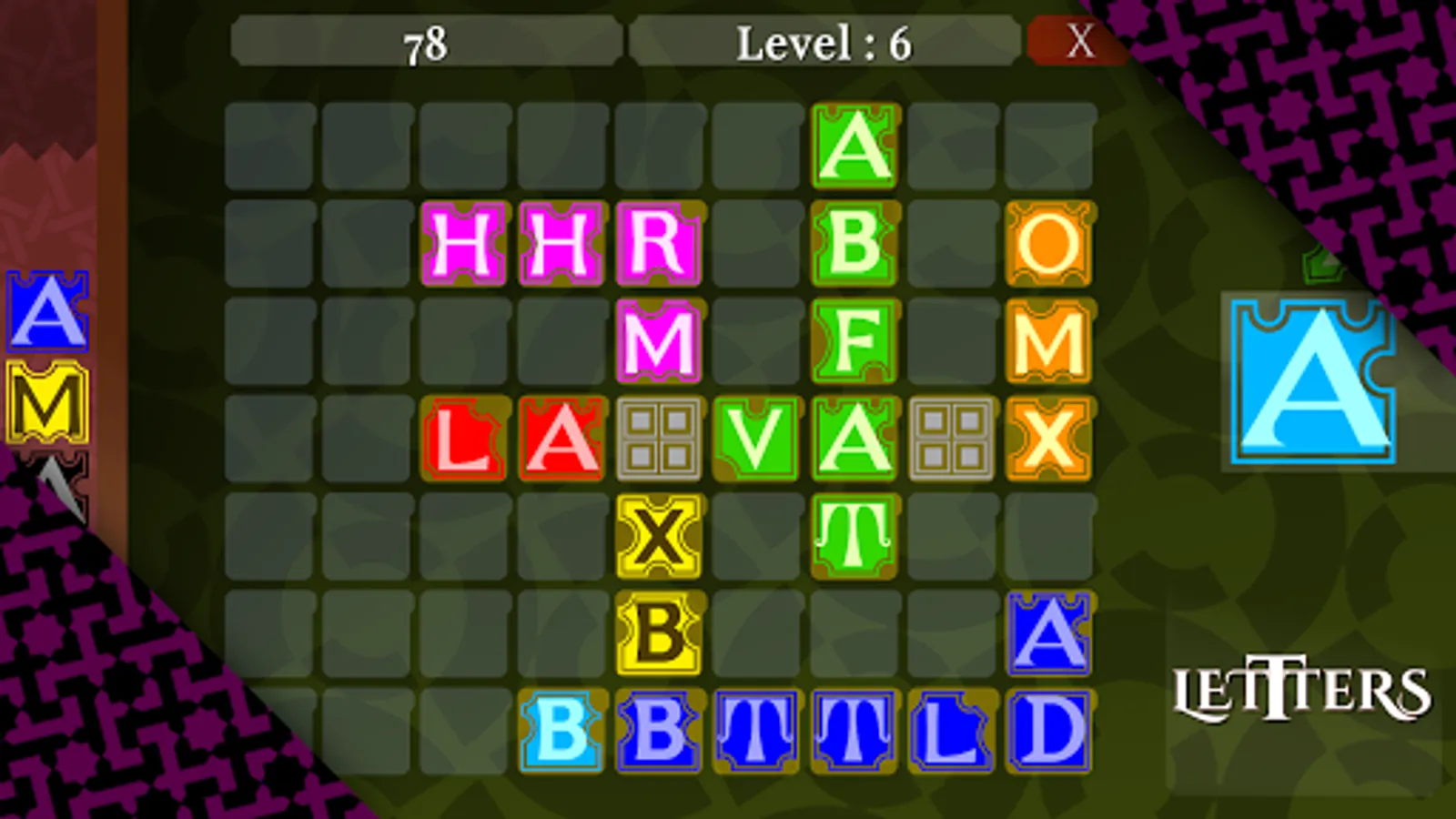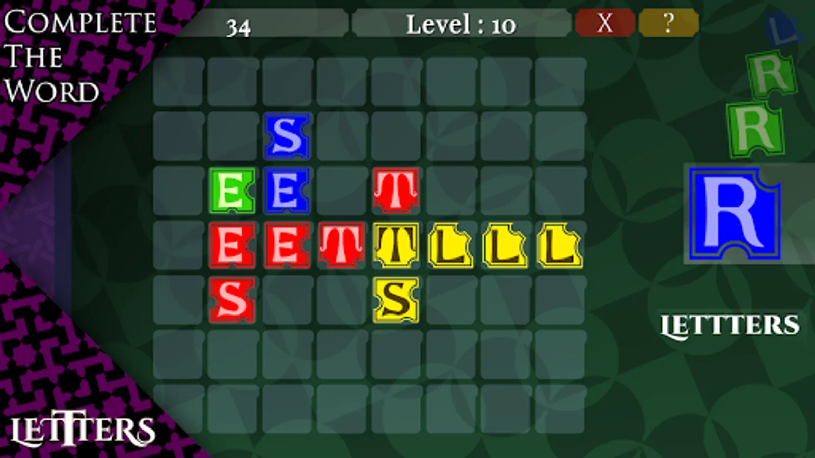 a Quick puzzle just match the letters with colors and fill the board or Construct the words to Win.