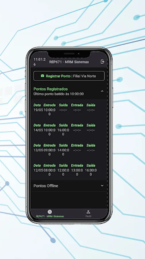 With our App REP671, your employees register points in fixed locations with GPS by facial recognition, also bringing security to the appointments. Your employees view the last recorded points and also request allowance approvals.