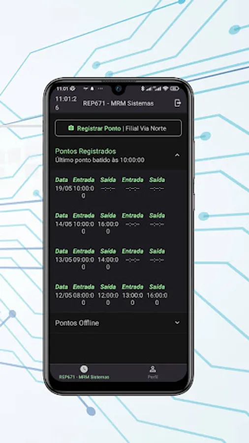 In our application REP 671-Kiosque we have a list of employees that allows several employees to register their points from a single device. The records are made through fixed location by GPS and facial recognition, bringing more security to the markings, in addition to viewing the last registered points, they can also request approvals for allowances.