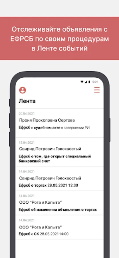 - The ability to receive push notifications about trades, meetings, court sessions and set up alerts in a format convenient for you.