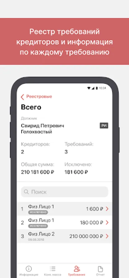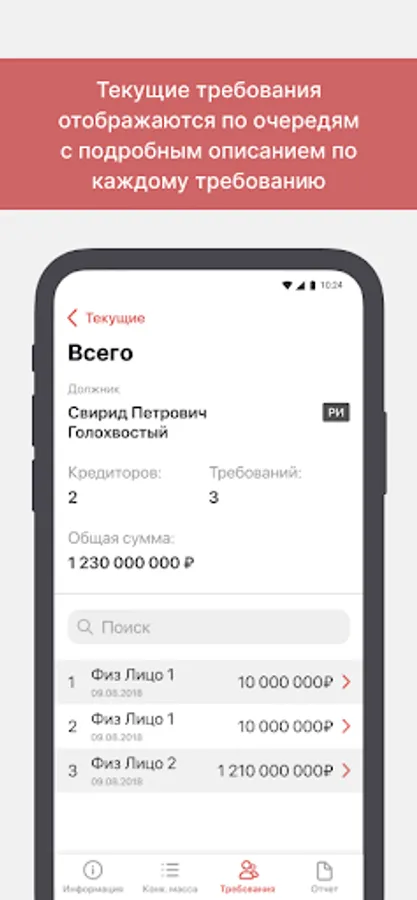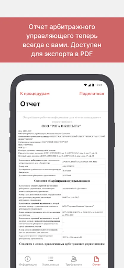 By installing the application, the insolvency administrator, his team and observers (creditors, the Federal Tax Service and other interested parties) will be able to familiarize themselves with the data on the bankruptcy procedure at any time.