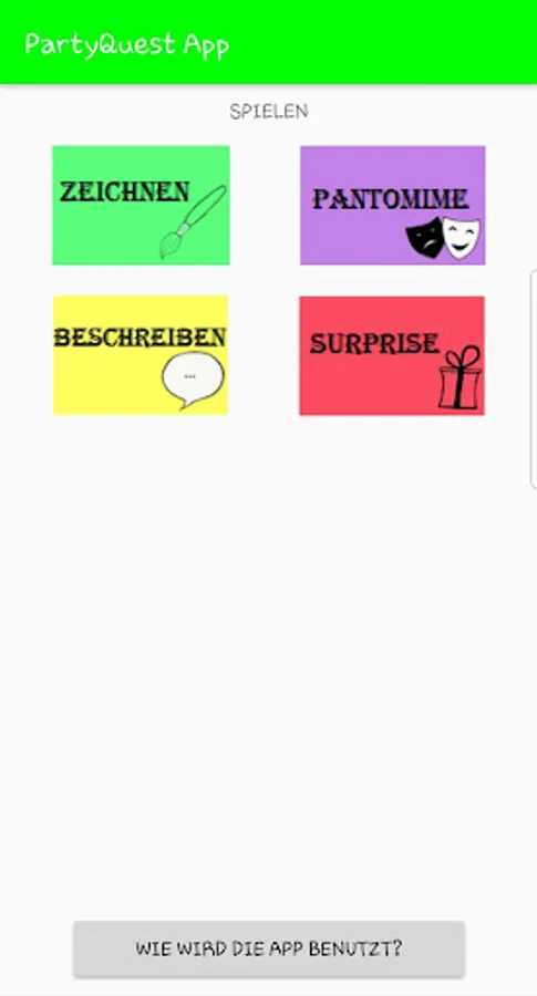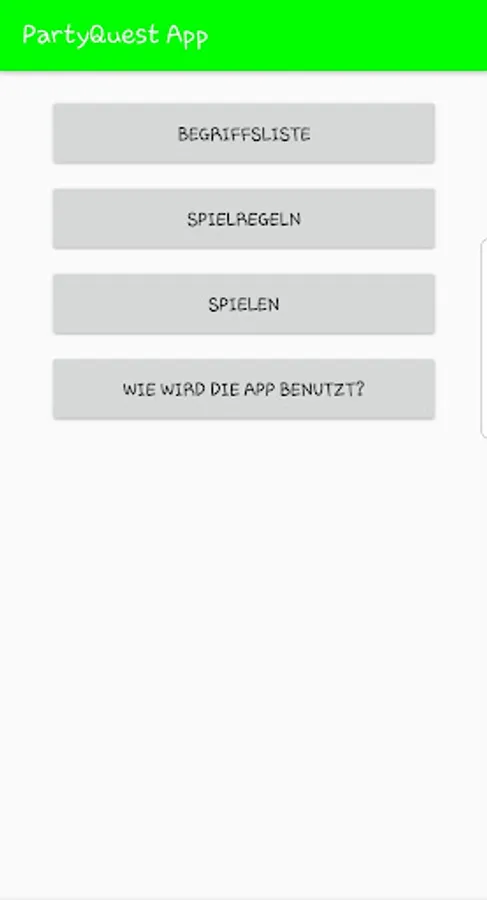 This is the official app for the game "PartyQuest". Just like the game, the app was also created in the course of the P-seminar "Development of a parlor game" of the high school graduation class 2017/19 at Regental-Gymnasium Nittenau. The app serves as an extension to the game, the game itself is needed to play. The app should allow players to incorporate their own terms to expand / change / replace the actual list of terms. The PartyQuest team wishes all players a lot of fun and success while playing.