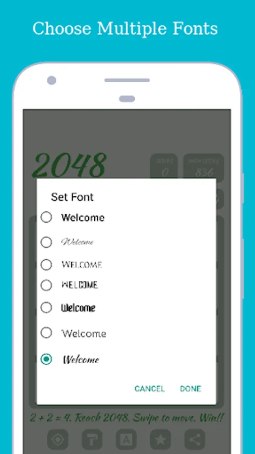 Fully featured and addictive mobile version of 2048 game and most perfect number puzzle game for Android! Now improve your winning chance with the custom goal