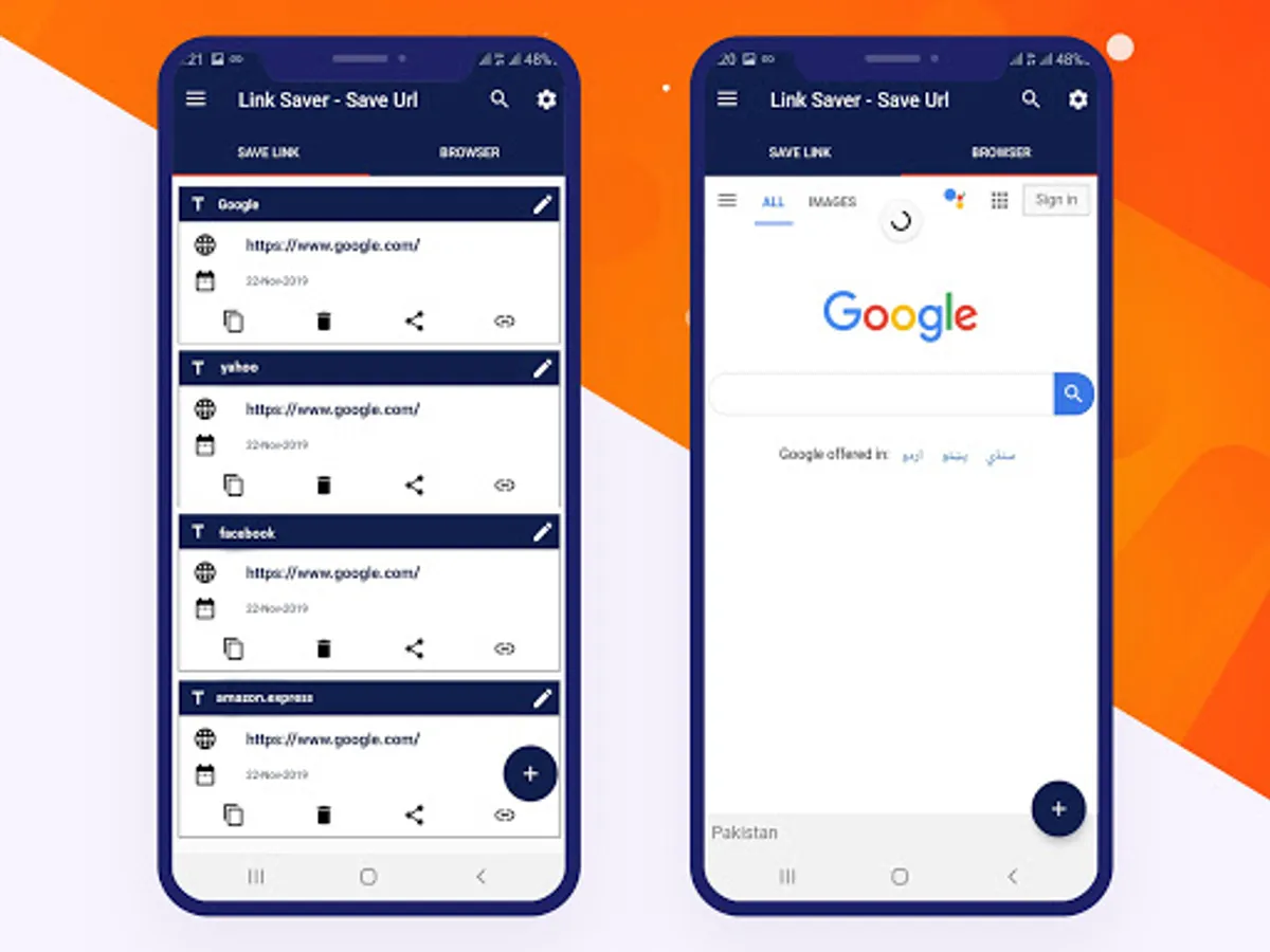 Link saver work like browsers bookmarks mean work like url manager where you manage all your url link easily . the app let you copy link to clipboard or directly share the link from browsers and store in the app . Save all url and bookmarks in one place with our nice tools .