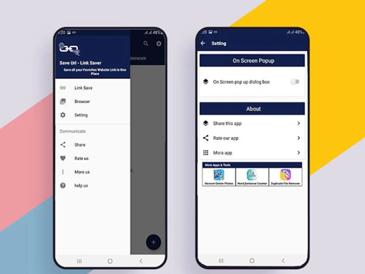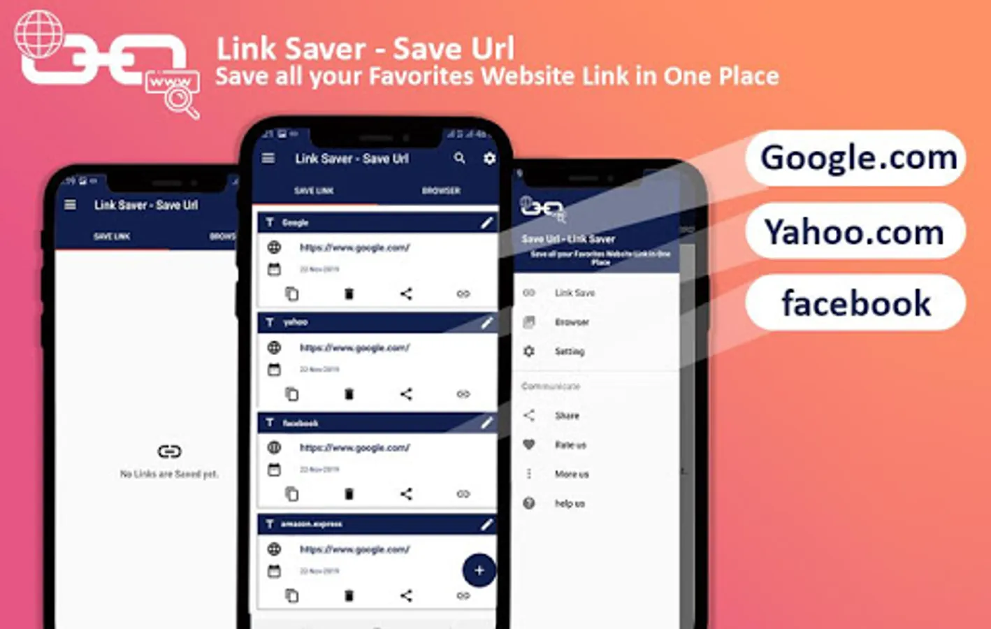 Some time it is very important to save all your important url / link of many important website , articles , blogs . for this purpose we developed such a nice app called Link Saver - Save Url , the app let you store unlimited web url of articles in one place Link saver store news-posts , websites , or any web-page you found interesting over the internet and you want to store it for future view or reading .