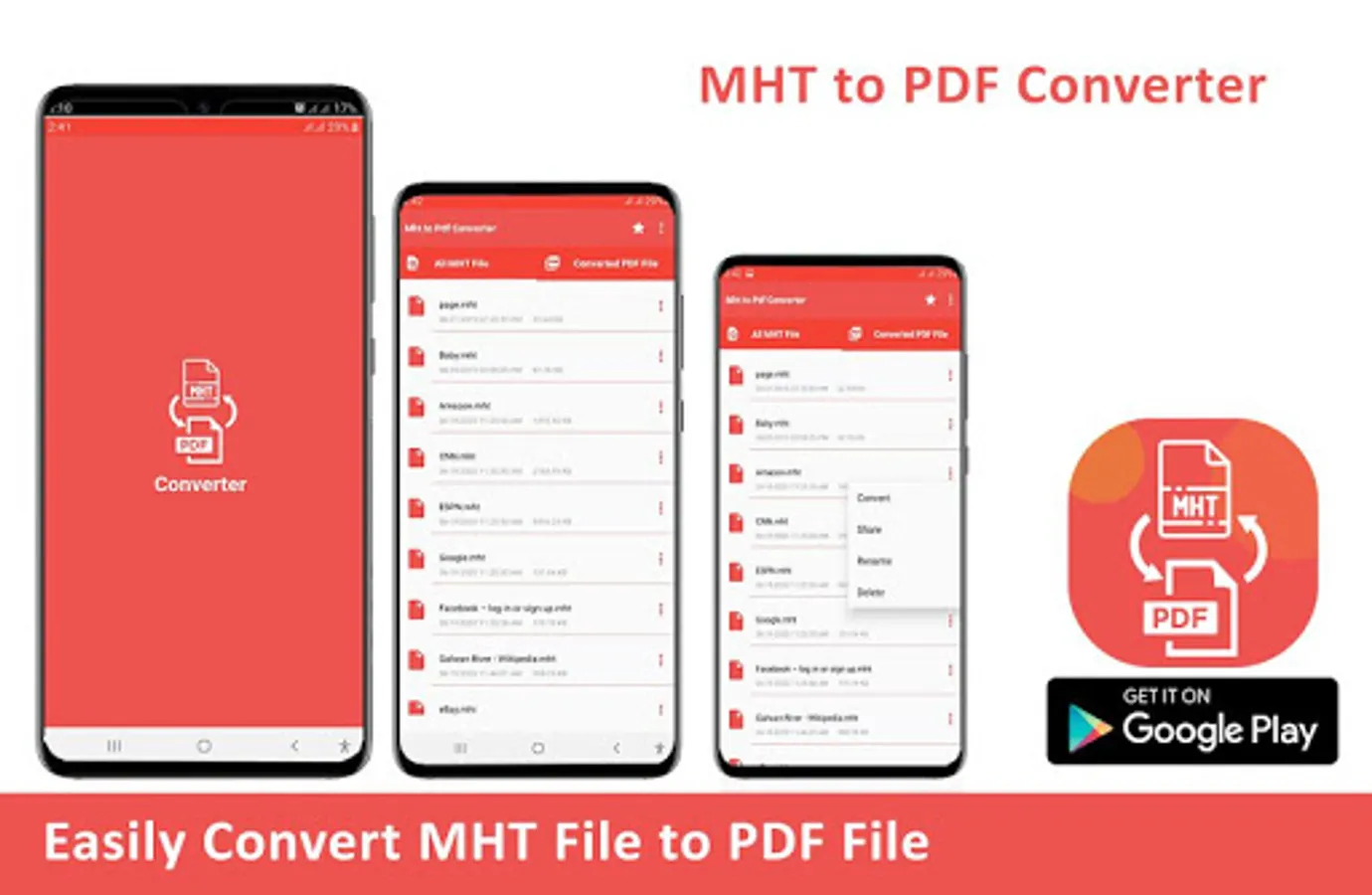 Some time you need to convert mht file to pdf for this we introduce such nice tools called mht to pdf converter . the app let you to convert all type of mht/mhtml file to pdf format easily and smoothly . Means some time you need to print mht / mhtml file so its easy to convert first mht file to pdf and print those pdf file easily . the app also work as pdf viewer you can view pdf file easily with this app .
