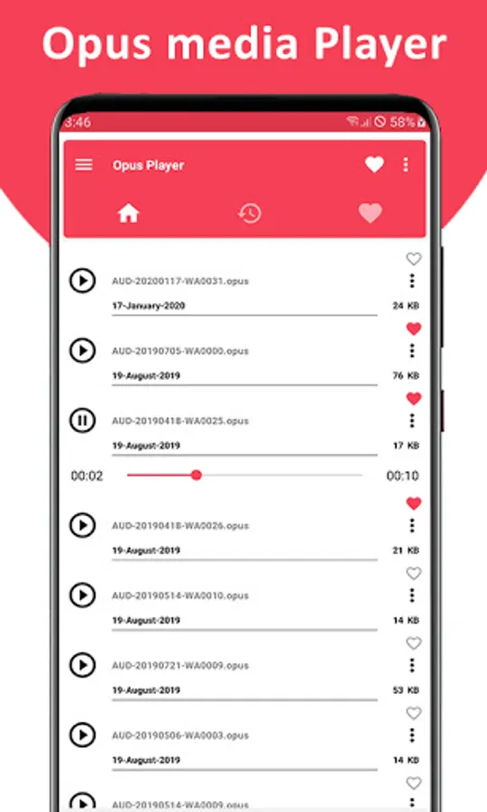 opus media player for audio manage is best app to listen opus audio file easily with opus player , The opus player for whatsup show you list of all opus audio you can easily listen all your opus audio file format . play opus audio with this nice player easily and smoothly with the help of opus media player.