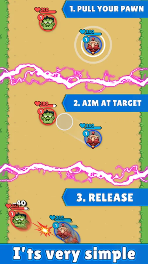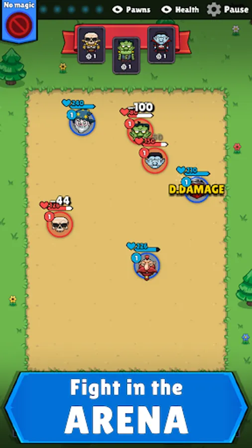 - Simple control of the hero and pawns in the arena