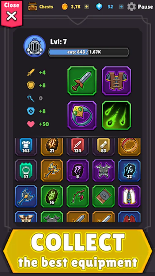 In this epic RPG, you can form your own units based on the unique abilities of each pawn. Level up your character to increase the power of your epic army and face more formidable enemies. Get epic equipment that will strengthen and protect your army of your hero. Create powerful magic that can turn the tide of battle. Find chests with gold as useful loot.