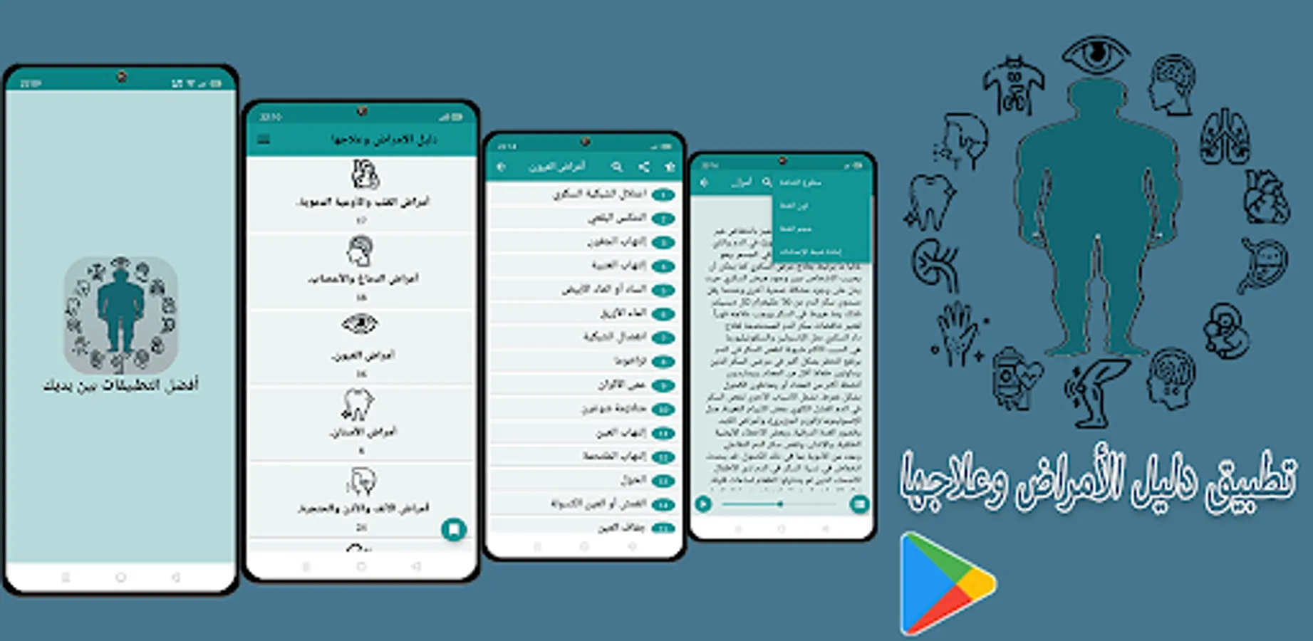 An application that includes the most important and most common diseases, their causes, diagnosis and treatment methods.