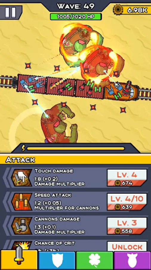 Prepare to be blown away by the enhanced upgrades system in Train Defense: Survivor. Gone are the days of simple, one-dimensional improvements. This game takes it to the next level, allowing you to tailor your upgrades to suit your specific playstyle. Progress through the game and unlock powerful enhancements that will boost your weapons, trains, and overall performance. As you hone your skills and experiment with different strategies, you'll witness your defenses evolve into an unstoppable force, ready to face any challenge head-on.