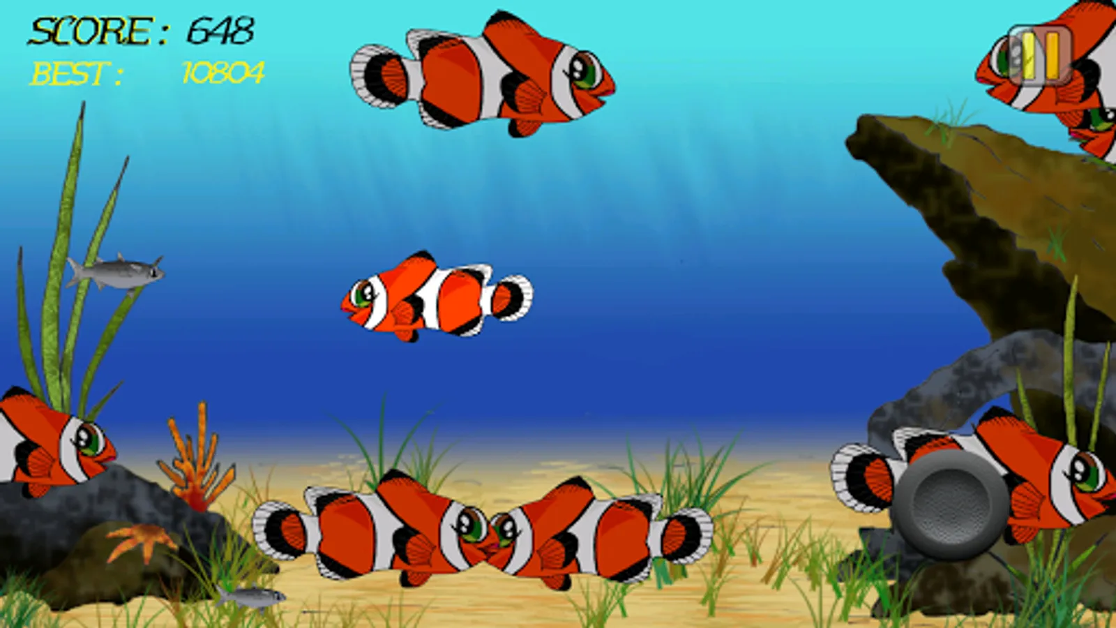 Escape from the cave dodging the obstacles that appear on your way and break the record to become the most skillful fish of cave Mode. You can also eat smaller fish to grow and evolve and become the king of the seas on Endless Mode.