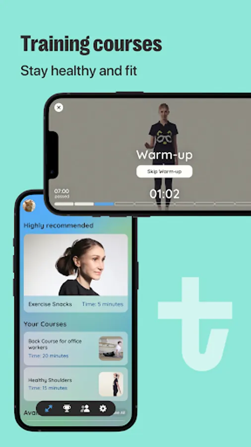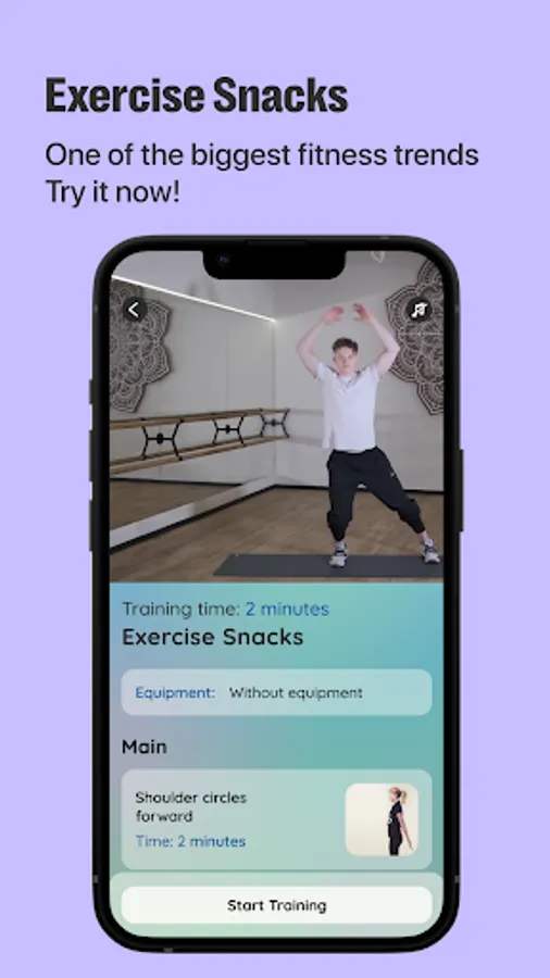 - Micro-exercises sets, light stretching, moves and other small daily actions to get daily wellness.